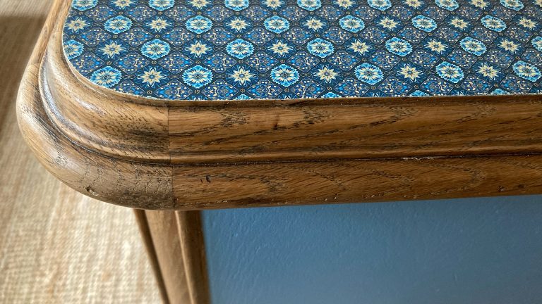 Manchmal, wenn ich ein Möbelstück fertig habe, bin ich selber überrascht und erfreut von den Vorher/Nachher-Bildern. So auch hier. Bei diesem Projekt entstand eine Kombination aus Holzoptik, Papier und Farbe. Vor…