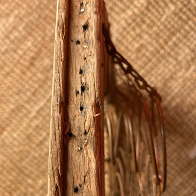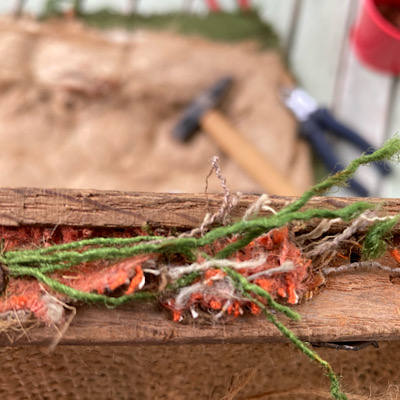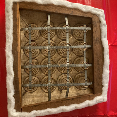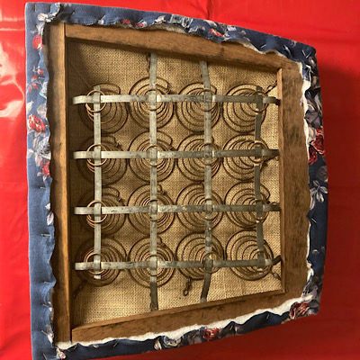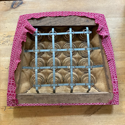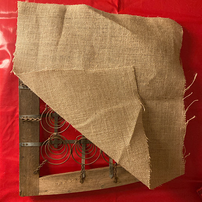 Der Federkorb war an einem Rahmen befestigt, den ich einfach herausnehmen und separat bearbeiten konnte, was die ganze Sache einfacher machte. Zuerst entfernte ich den provisorischen Stoff: