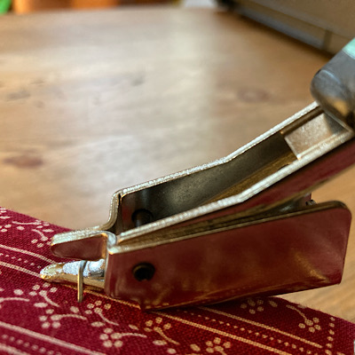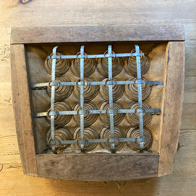 Um den Federkorb zu polstern, besorgte ich alle Materialien neu: Federleinen, Polsterwatte, Schaumstoff und Polsterflies. Die kann man, je nach Anwendung, in verschiedenen Stärken und Ausführungen im Internet bestellen. Dringend nötig war außerdem ein elektrischer Tacker. Der Federkorb war nämlich aus Eiche, einem sehr harten Holz. Der mechanische Tacker hatte beim ersten Versuch die Klammern nicht in das Holz treiben können. Und dann ging es los: