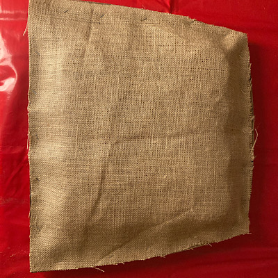 Genauso verfahre ich mit der Polsterwatte: Grob zugeschnitten darüberlegen und an allen vier Seiten befestigen.