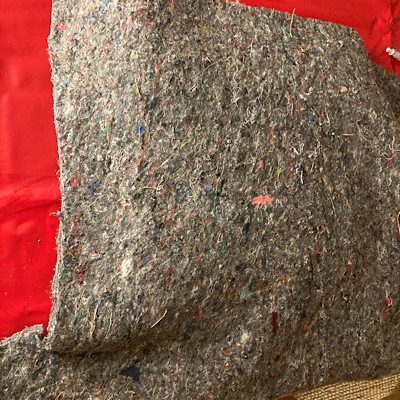 Das Flies soll verhindern, dass der Bezugsstoff auf dem Schaumstoff hin und her rutscht.