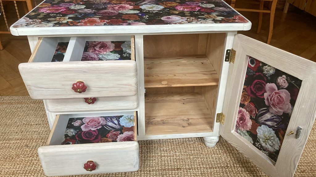 Seit meinem Studium gestalte ich Räume und arbeite alte Möbel auf. Ich brenne, beize und schleife Möbel ab, ich öle, wachse oder lackiere sie. Ich beklebe sie mit schönem Papier oder Stoffen oder ersetze Tür-Füllungen mit Glas. Ich gestalte Dinge aus Naturmaterialien, Stoffen oder Papier. Das macht Freude! Verbrauchte oder alte Gegenstände einer erneuten Nutzung zuzuführen ist etwas sehr Erfüllendes für mich.