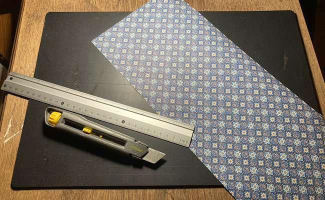 Ich wusste noch gar nicht, wie ich den Schrank gestalten wollte, als ich in einem Geschäft ein Papier sah, das mir für mein Projekt direkt ins Auge sprang. Alle Farben in diesen kleinen Mustern passten richtig gut zur Farbe des Schranks.