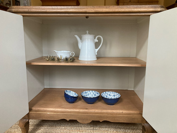 Vor einigen Wochen bekam ich ein paar alte ausgediente Möbel geschenkt, die auf den Sperrmüll sollten. Irgendwie gefiel mir dieser schlichte Unterschrank, wahrscheinlich wegen seiner breiten Kopfleiste und geschwungenen Füße.