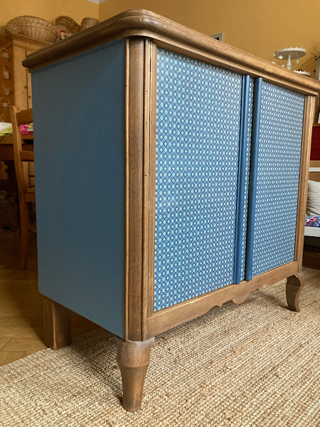 Manchmal, wenn ich ein Möbelstück fertig habe, bin ich selber überrascht und erfreut von den Vorher/Nachher-Bildern. So auch hier. Bei diesem Projekt entstand eine Kombination aus Holzoptik, Papier und Farbe.