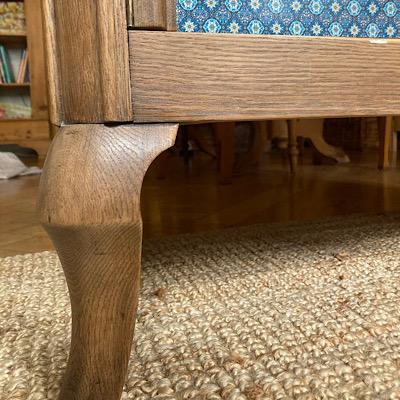 Entsprechend wurde auch der Innenraum in einem sehr hellen Weißgrau gestrichen, die Böden geschliffen und klar lackiert. Alles, was nicht „Fläche“ war, beließ ich in der Holzoptik. Die Maserung der Schwünge und Rundungen fand ich einfach zu schön.