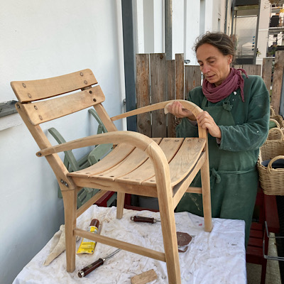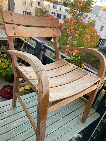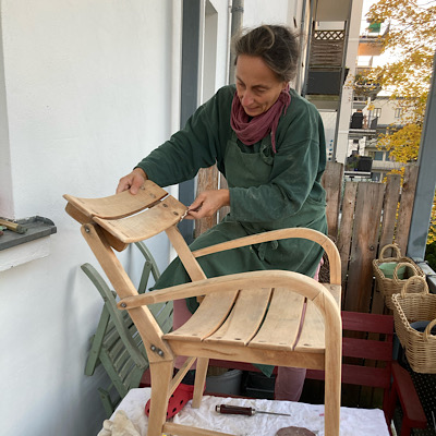 Eigentlich war der Plan, diesen originellen alten Stuhl einer Kundin komplett zu zerlegen, um ihn gründlich abzuschleifen zu können und anschließend zu lasieren.